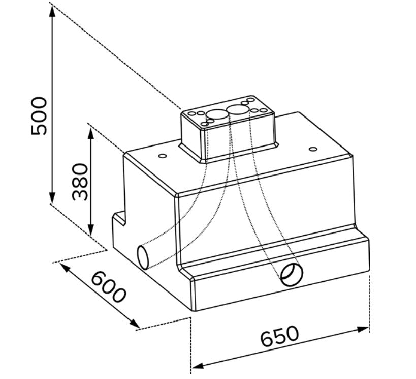 Abmessungen (L × B × H): 650 × 600 × 500 mm