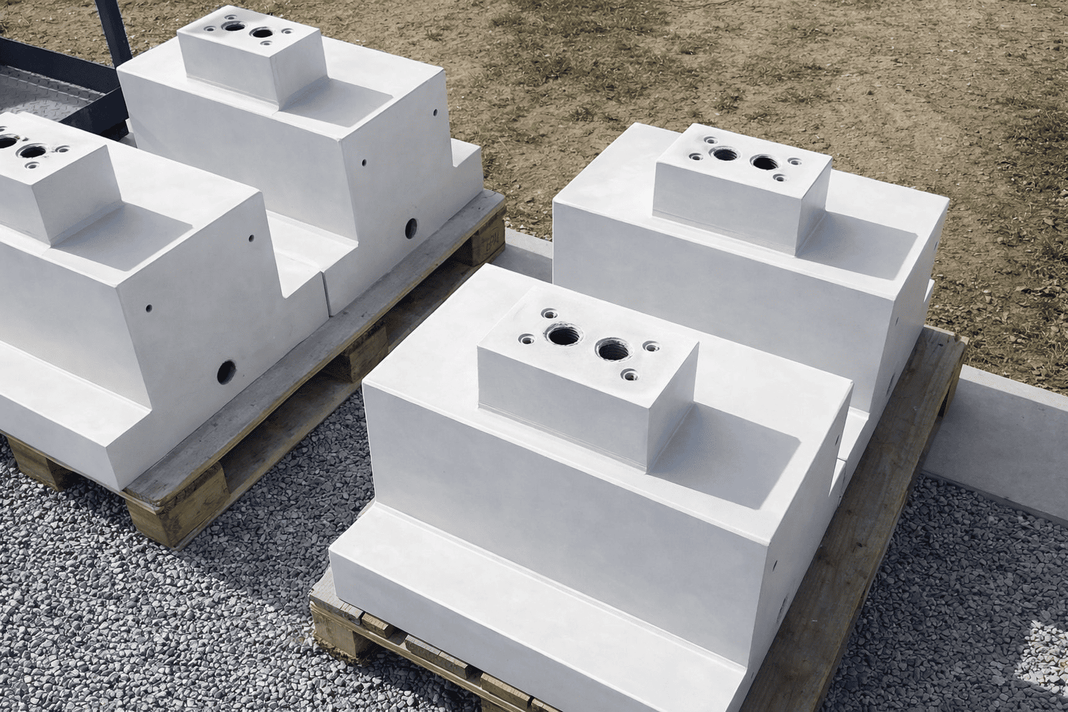 Durch die Fertigbauweise entfällt das aufwendige Betonieren vor Ort. Das Fundament wird montagefertig geliefert und ermöglicht eine schnelle, saubere und planbare Installation – ideal für Projekte mit engem Zeitplan oder schwierigen Witterungsbedingungen.