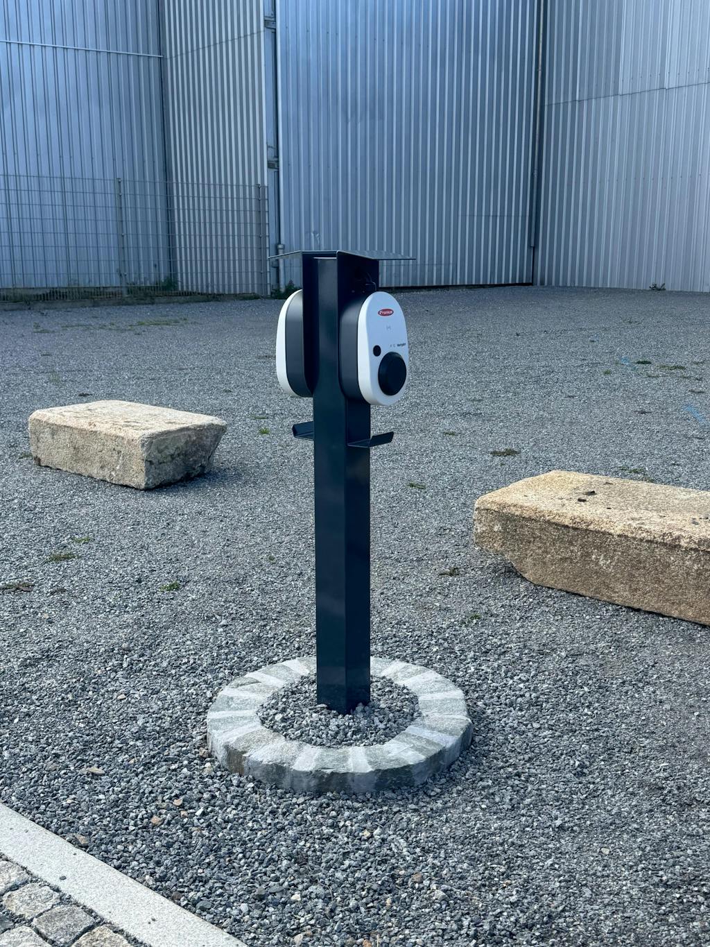 Ich musste eine Freiluftlösung realisieren, die Stele von die-ladesäule.de war die Lösung.