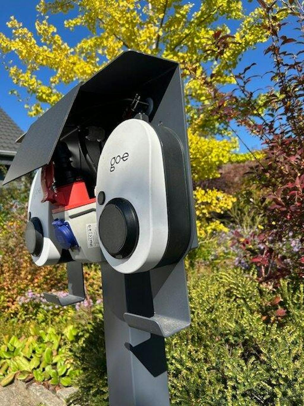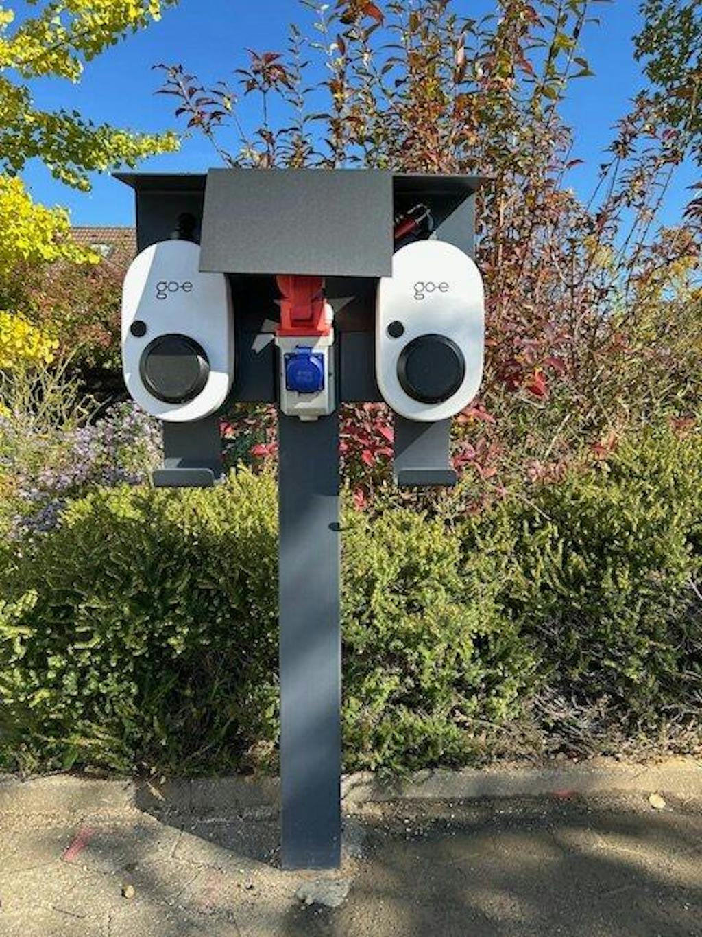 Es wurde nicht die ursprünglich genannte Doppel-Säule für VW installiert, sondern eine nach meinem Wunsch von Ihnen geplante Lösung für 2x Go-E und 1x CEE Steckdose aufgestellt.