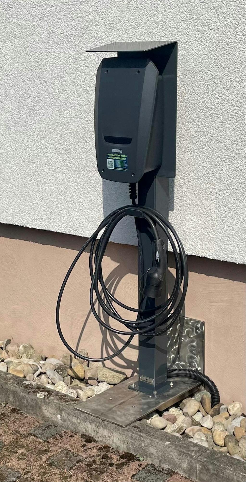 • Vi har utformat denna laddningsstolpe speciellt för denna väggbox. Den passar exakt och är perfekt skyddad. Taket är perfekt för att ge ytterligare skydd mot väder och vind.