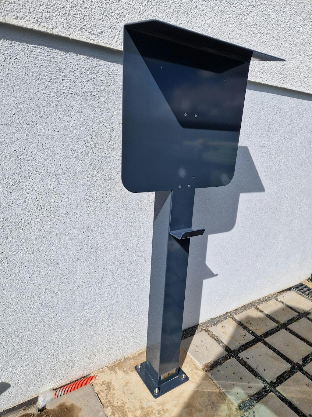• Vi har utformat denna laddningsstolpe speciellt för denna väggbox. Den passar exakt och är perfekt skyddad. Taket är perfekt för att ge ytterligare skydd mot väder och vind.